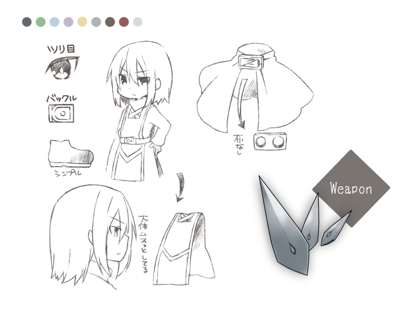 ■eyecolor / ● haircolor / ● ■erement / 雷・闇 ■weapon / 飛刀