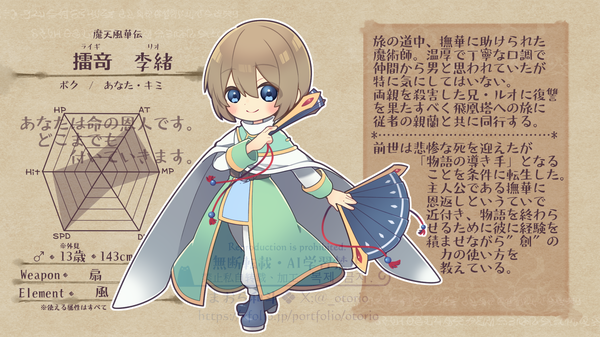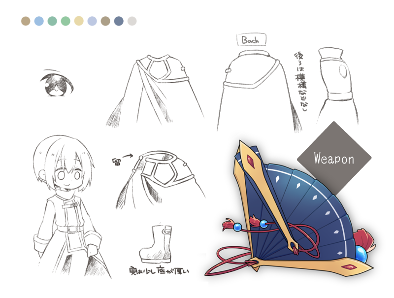 ■eyecolor / ● haircolor / ● ■erement / 風(使える属性は全て) ■weapon / 扇・片手剣