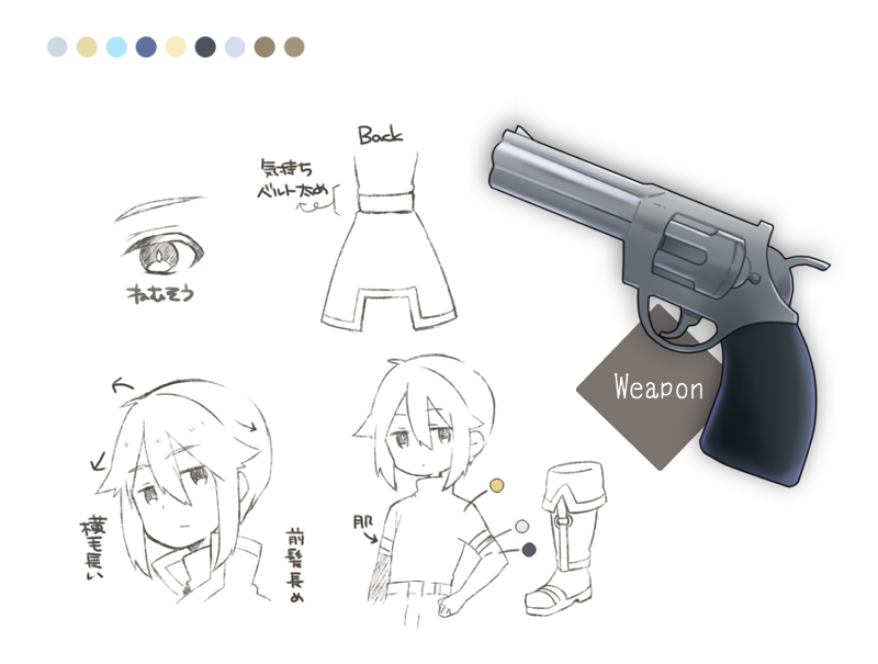 ■eyecolor / ●● haircolor / ● ■erement / 雷・土 ■weapon / 銃