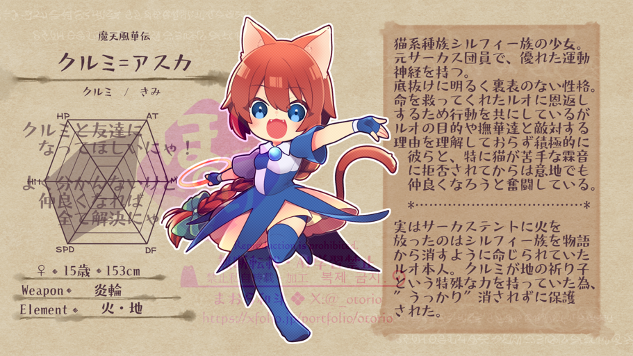 猫系種族シルフィー族の少女。命を救ってくれたルオに恩返しをする為、行動をともにしているが