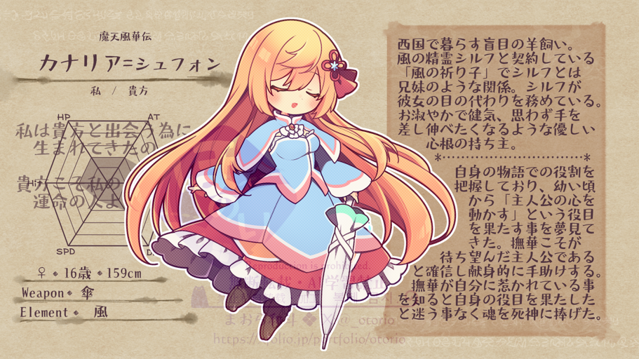 ■eyecolor / 青 haircolor / 橙 ■erement / 風 ■weapon / 傘