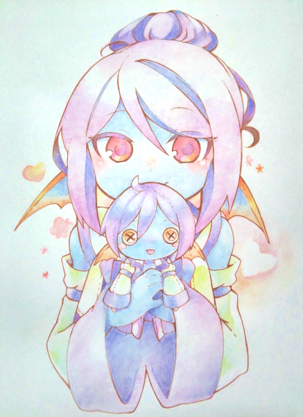 ●DQXよその子は冒険日誌で投稿するか悩みます。 水彩絵でエルミーナさんとヂェリィさんおかりしました。