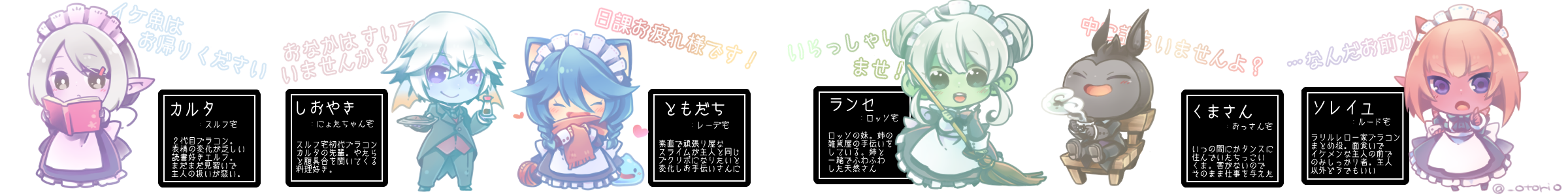 ●作業合間にちまちま描いてたDQXプライベートコンシェルジュ全員分揃ったので。