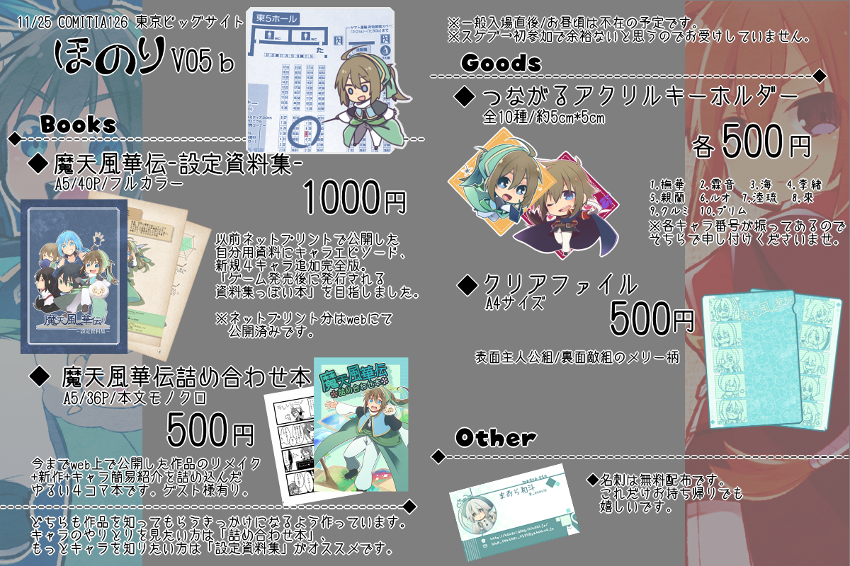 ■11/25コミティア126の正式なお品書きです。スペースは【V05b】です。